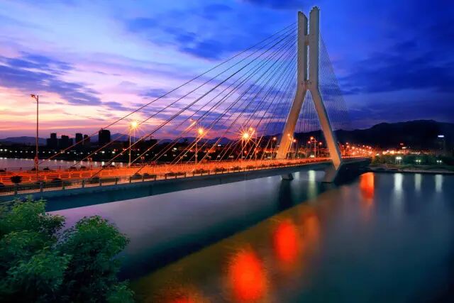 浮云大桥横跨在浮云溪上,是云和县最大的悬挑桥梁。每当夜幕降临,浮云大桥就成了灯的海洋。盏盏点亮的彩灯,把大桥打扮得更加绚丽多彩。
