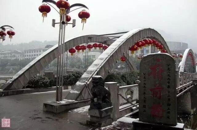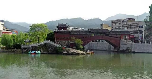 庆元咏归桥又称杨公桥、护龙桥、兴贤桥,在县城咏归路,始建于元大德十年(1306),咏归桥北倚球山,上有如意楼、九曲岭,南端桥基建于“石龟”之上,松源溪与竹坑溪在桥下交汇,潴成两个深潭,石龟又称石印,古人以“双潭石印”名之,为潆洲八景之一。桥南有“小蓬莱”,桥上建“补天阁”。